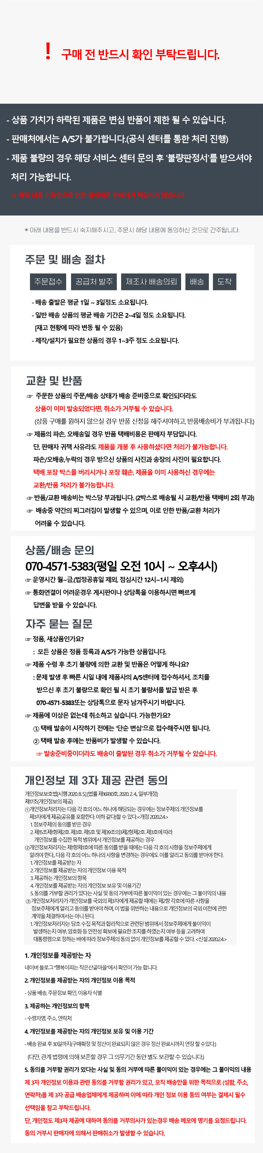 • - 교환/반품 안내: 고객변심 및 주문착오에 의한 교환/반품은 제품 수령일로부터 7일 이내 가능합니다.